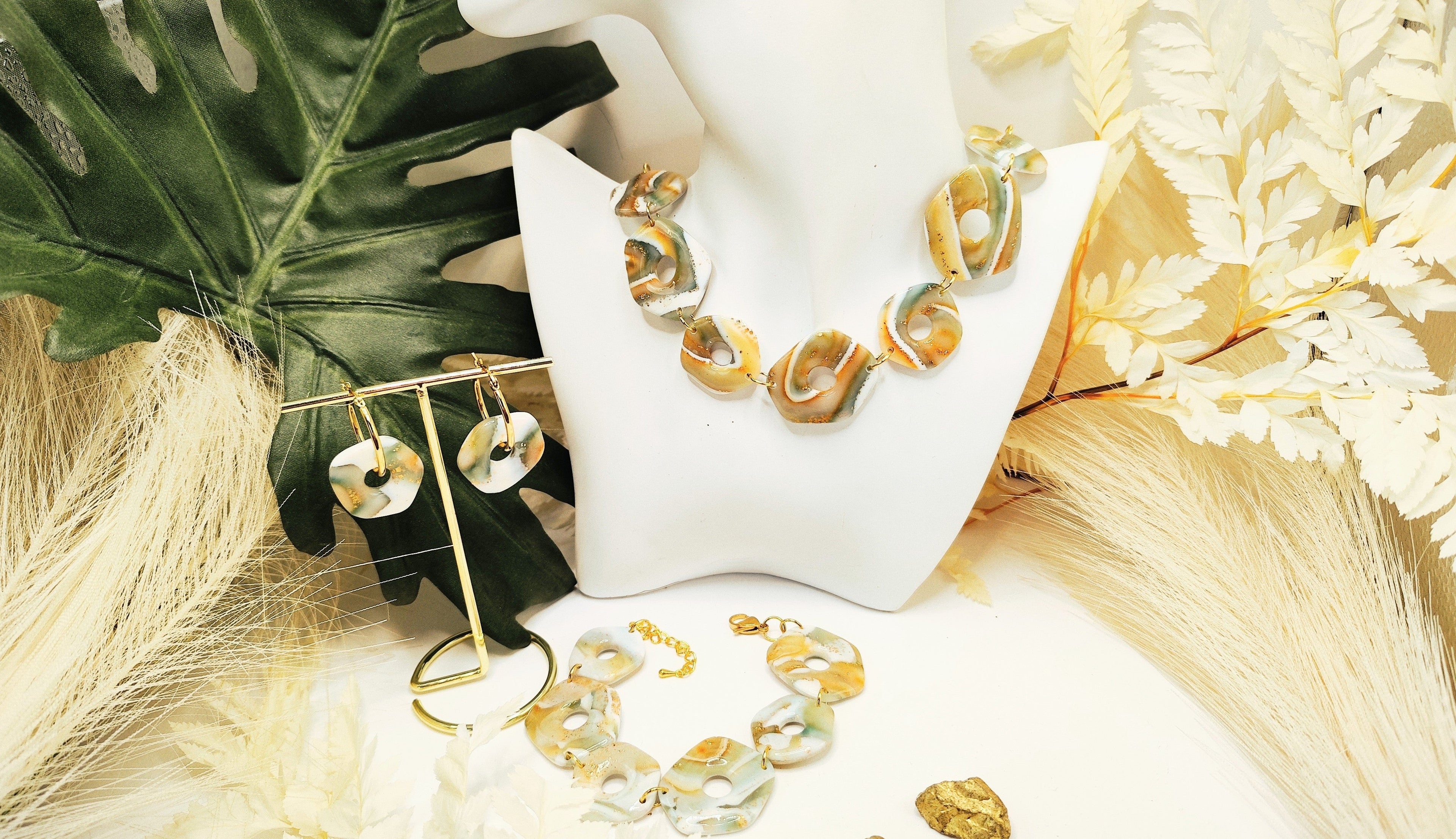 Découvrez nos bracelets en pâte polymère délicatement façonnés à la main, chaque pièce est modelées, cuites, poncées et assemblées avec soin. Légers et agréable à porter, ils s'adaptent facilement à toutes les tenues.