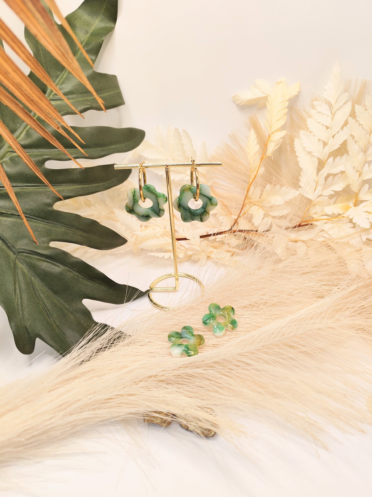 Découvrez nos pampilles interchangeables en pâte polymère, réalisées à la main pour offrir des couleurs délicates et des motifs uniques. Légères et élégantes, elles s'adaptent parfaitement à toutes les créoles.