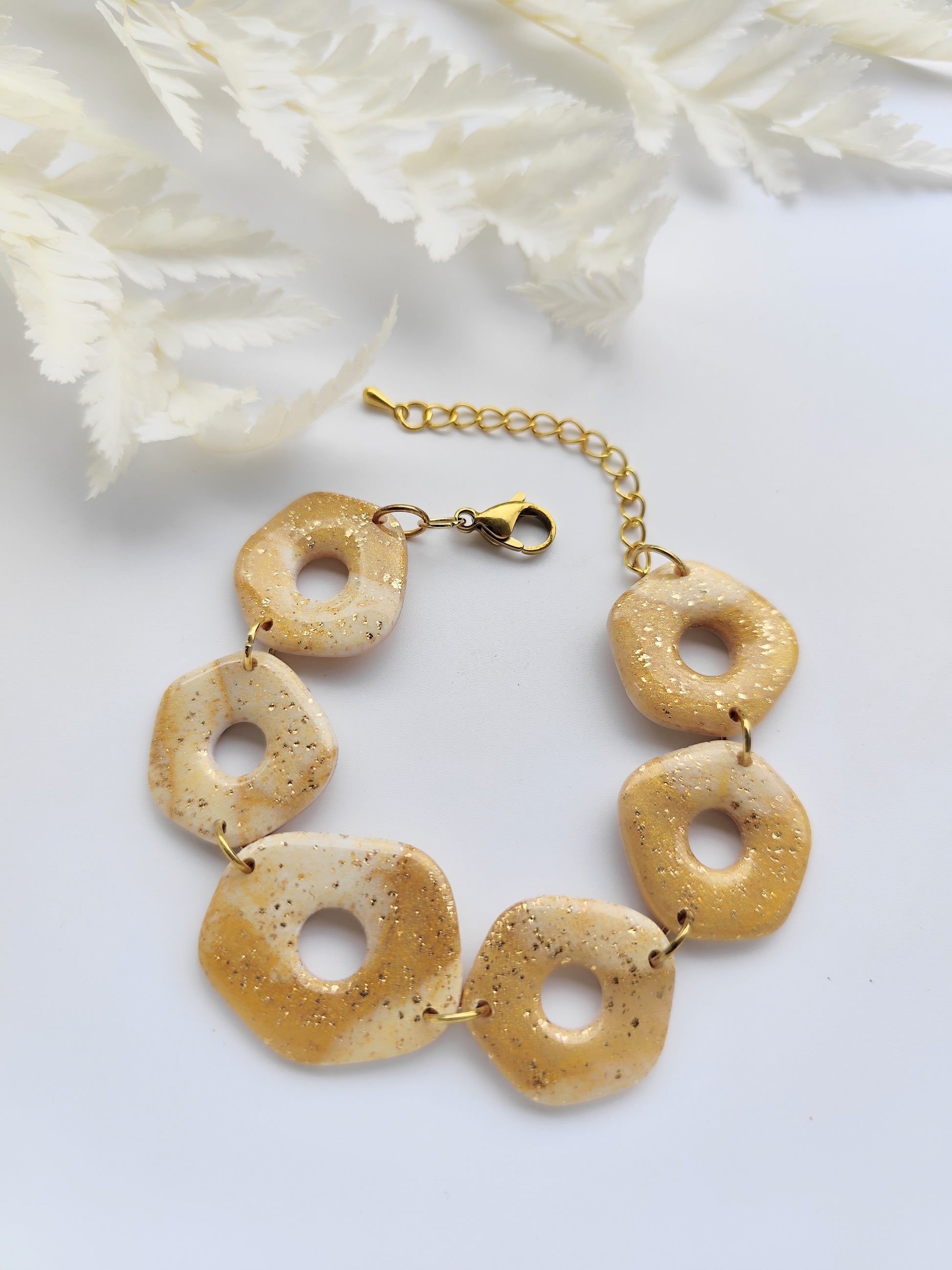 Bracelet en pâte polymère façonné à la main, finition vernis brillant.