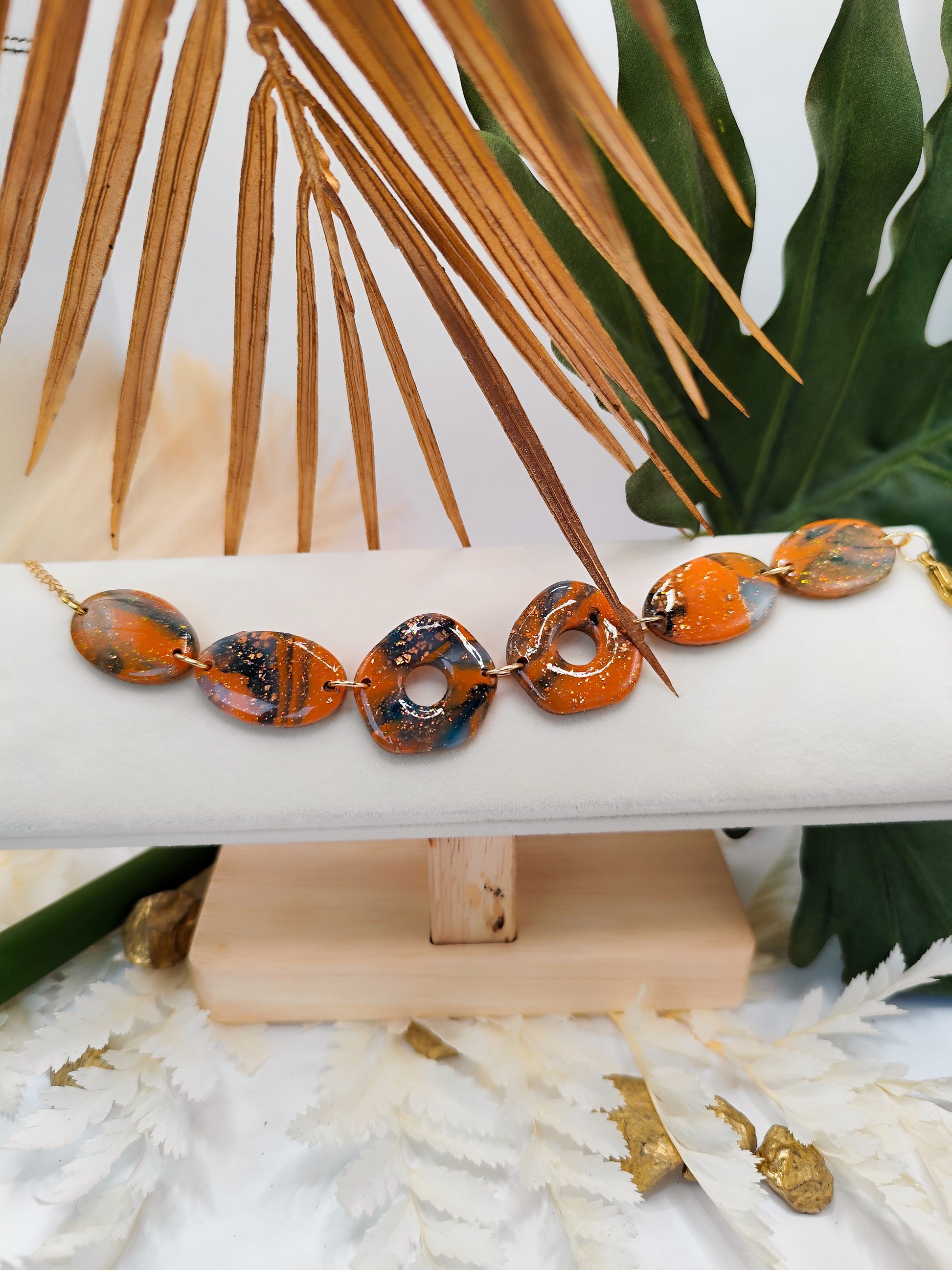 Bracelet en pâte polymère façonné à la main, finition vernis brillant.