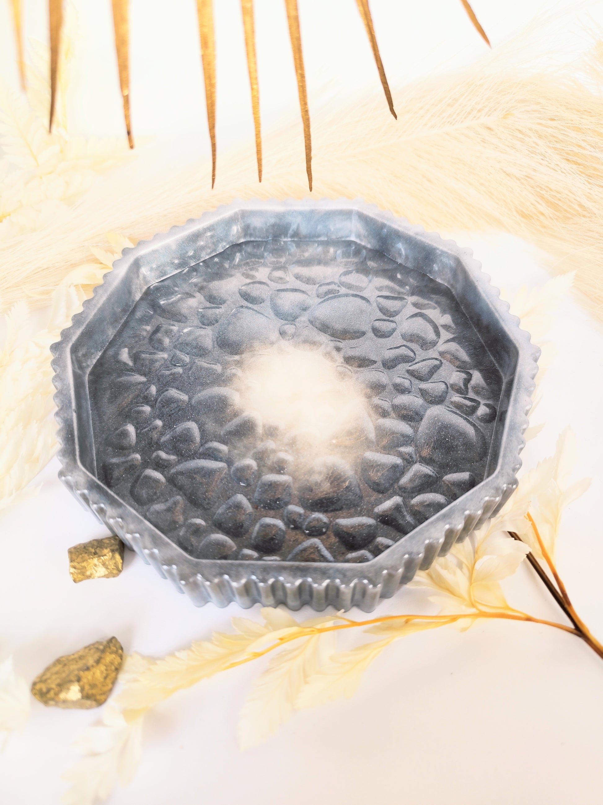 Plateau porte bijoux en résine époxy de couleur gris/blanc