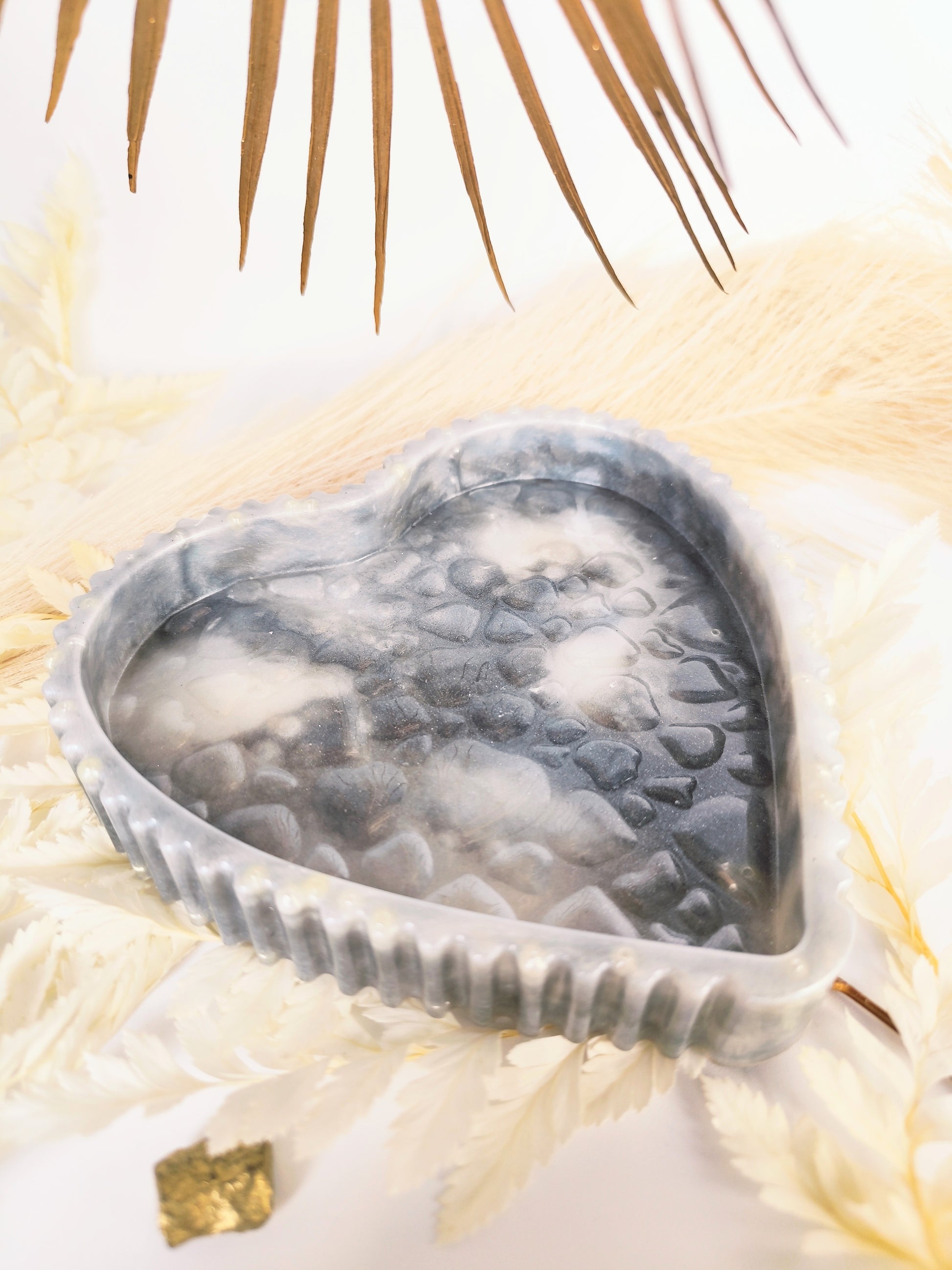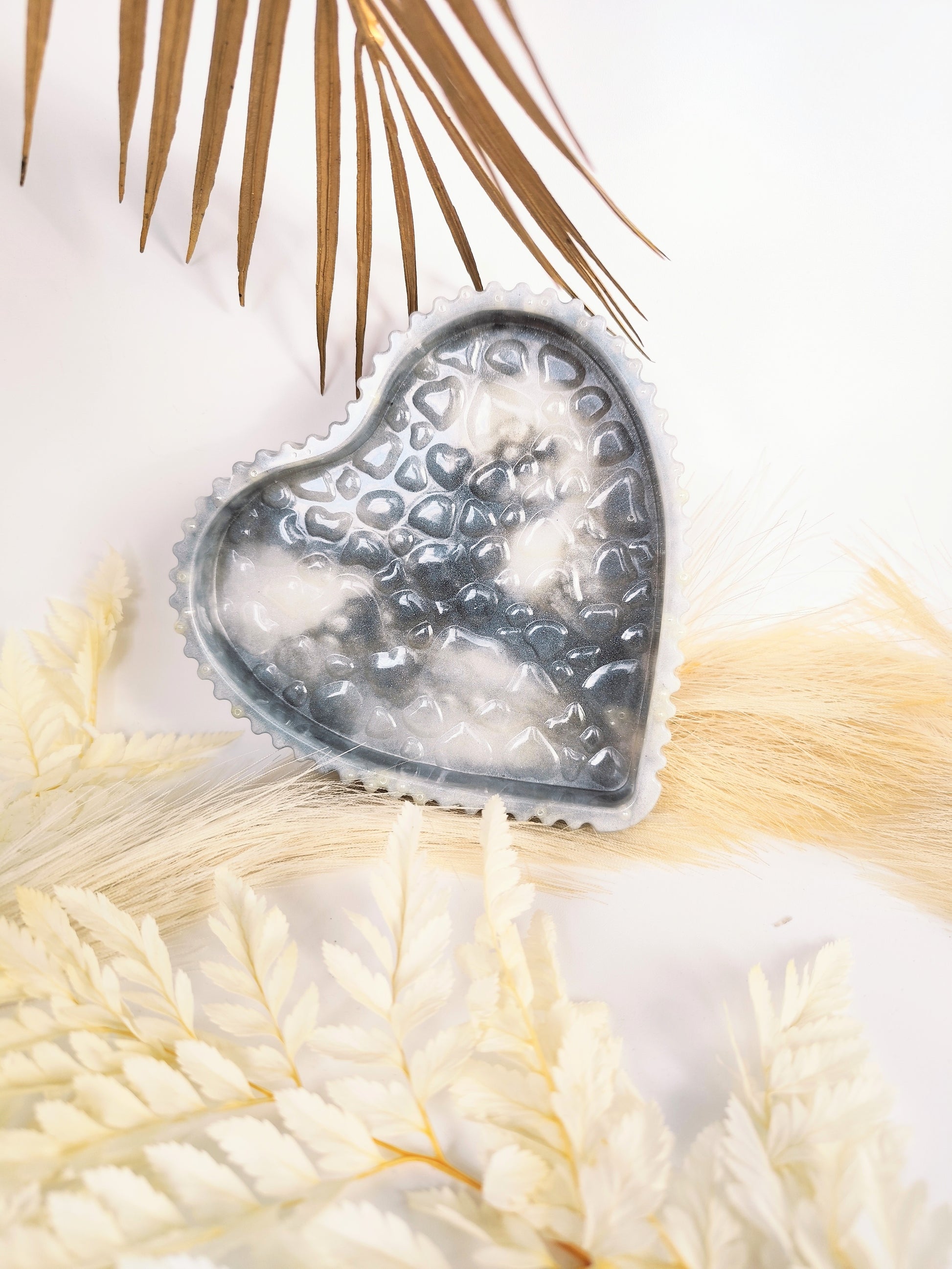 Plateau porte bijoux en résine époxy de couleur gris/blanc