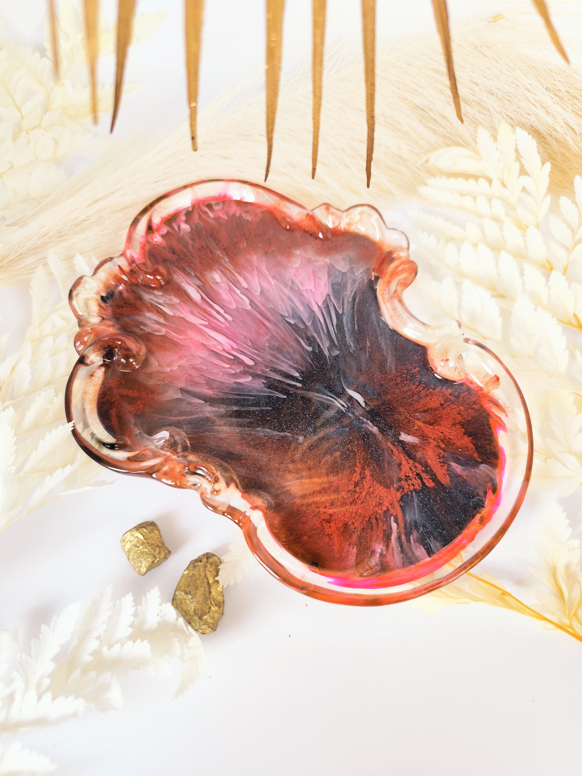 Plateau porte bijoux vintage en résine époxy de couleur orange/bariolé